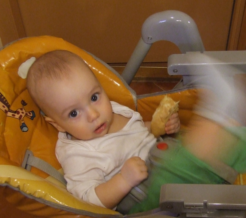 Persze mi is összehasonlítjuk a két gyerek fejlődését, B.-vel többször beszélgettünk arról, hogy Andris rengeteg mindent korábban csinált, mint Dávid. B.-nek még a legelején volt egy szerencsétlen megjegyzése, amit úgy is lehetett érteni, hogy elhanyagoljuk Dávidot, ami nyilván nem igaz, de utána napokig vizsgáltam magam, hogy elhanyagolom-e a kisebbik kisfiamat. Nem, nem hanyagolom el. Egyrészt Andris az átlagnál sokkal ügyesebb kisfiú, másrészt Dávid teljesen más típusú személyiség, mint a bátyja (pl. nem olyan kezdeményező és zárkózottabb), harmadrészt Dávidnak szinte semmit nem kell tennie az ingerekért, készen kapja őket, Andris és az ő játékai folyamatosan biztosítják a sok-sok karnyújtásnyira lévő ingert, míg Andrisnak csak én voltam egész nap, és ha vágyott valamire, mozgósította az energiáit és megszerezte magának. Dávidnak sokkal kényelmesebb dolga van.